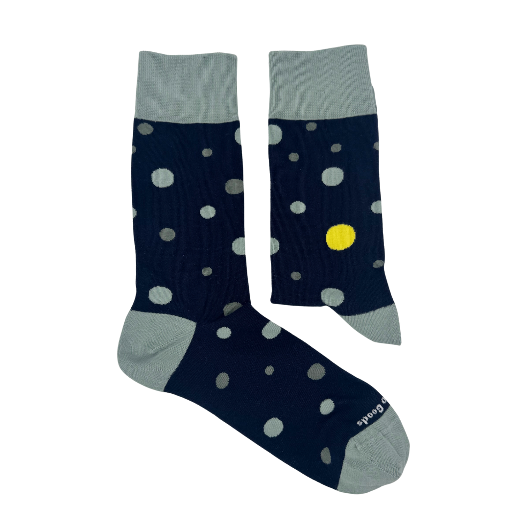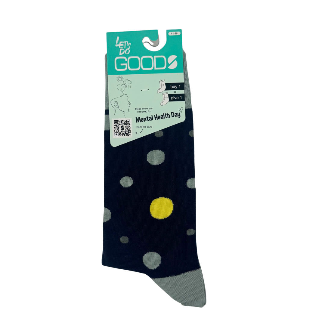 Finding a pattern in the chaos of the unknown. The ability to connect events and experiences like dots in the sky. The art of discovery, ensuring there's always another dot to navigate towards. Mental well-being influences the art of discovery; often, there are no visible dots ahead. That's why they designed these socks for Mental Health Day. Do you Connect the Dots?